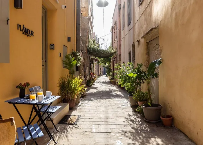 Das Hotel im Stadtviertel Chania Altstadt von Chania liegt in einer Entfernung von 13 Minuten zu Fuß von der Kathedrale der Jungfrau Maria und in einer Entfernung von nur 18 Gehminuten von Einkaufsmöglichkeiten wie der Markthalle. Fort Firkas ist in 17 Minuten zu Fuß vom Hotel zu erreichen. Alter Venezianischer Hafen befindet sich in unmittelbarer Nähe vom Flaneur. Die Bushaltestelle Ethniki Trapeza ist rund 700 Meter von der Unterkunft entfernt.